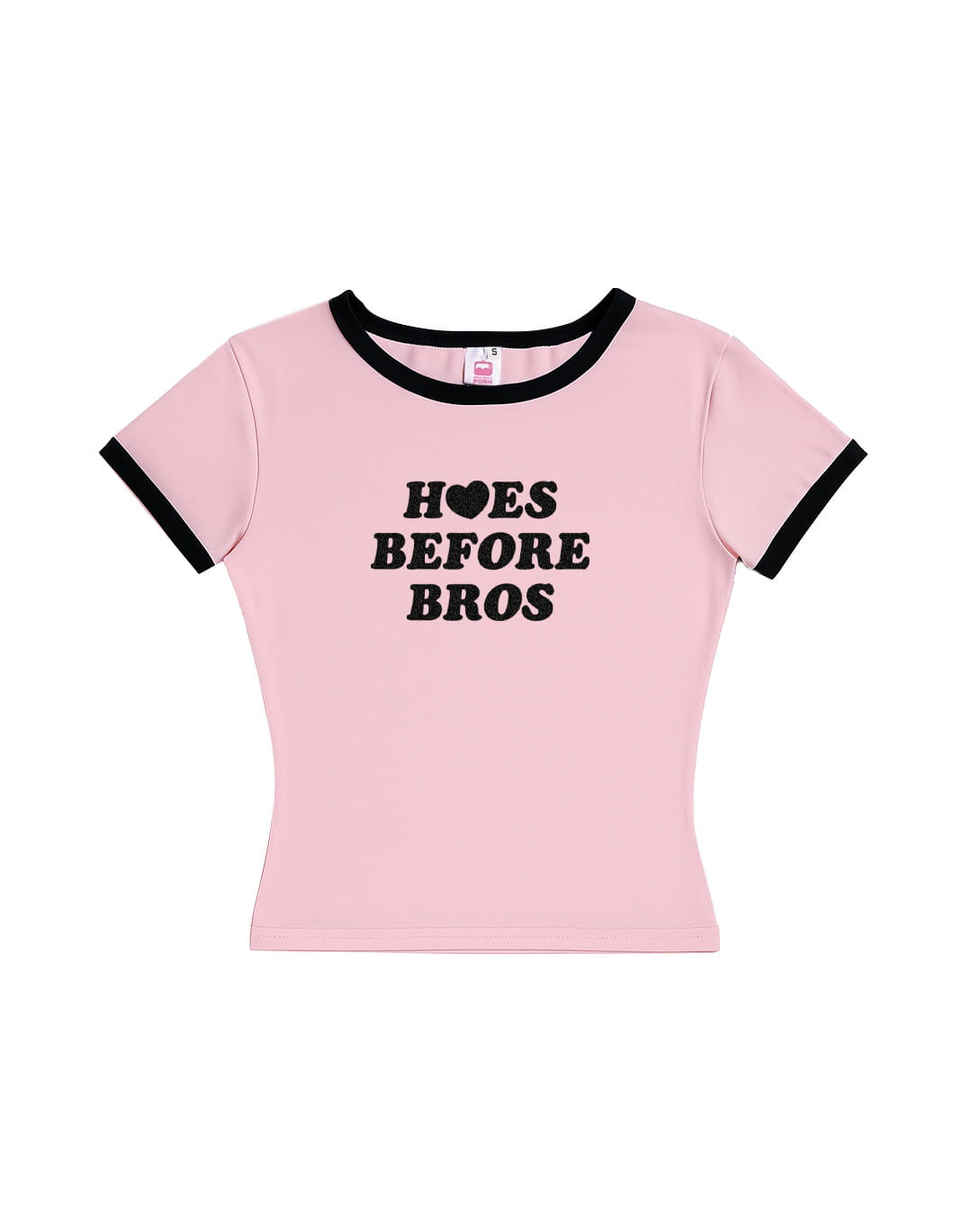 Dopasowany t-shirt z nadrukiem "Hoes before bros"
